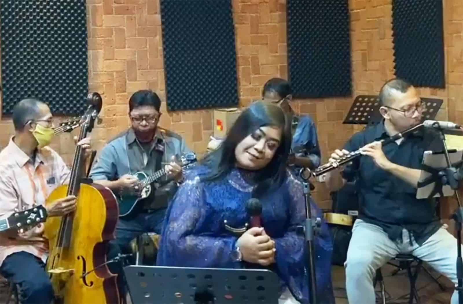 ’'Dalam pertunjukan daring ini kami berusaha mematuhi protokol kesehatan anjuran pemerintah,’’ katanya. Semua musisi tampak mengenakan masker di sepanjang pertunjukan berdurasi sekitar 90 menit itu. Hanya penyanyi dan pemain flute yang tak mengenakan masker. Pada episode ke limanya, Keroncong Indonesiaku menampilkan dua biduan yang secara bergantian menyanyikan lagu-lagu dalam irama keroncong asli dan langgam.