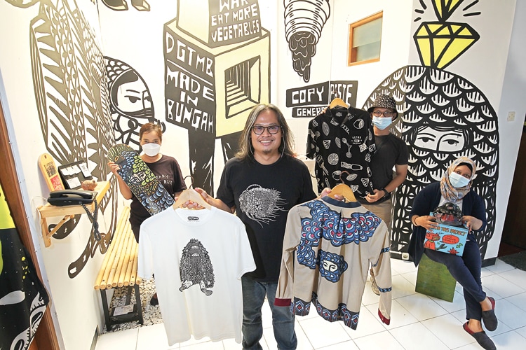 ”KESENIAN itu fleksibel. Bisa berada di mana pun dengan bentuk yang berbeda-beda,” kata seniman Eko Nugroho ketika ditemui di tokonya di kawasan Tegalrejo, Jogja, Rabu (2/6). Berangkat dari pemikiran seperti itu, Eko lantas mendiversifikasi karya untuk ide-ide berkeseniannya. Tidak sekadar menggambar di kanvas, tetapi juga membuat produk merchandise buat para penggemar seni.