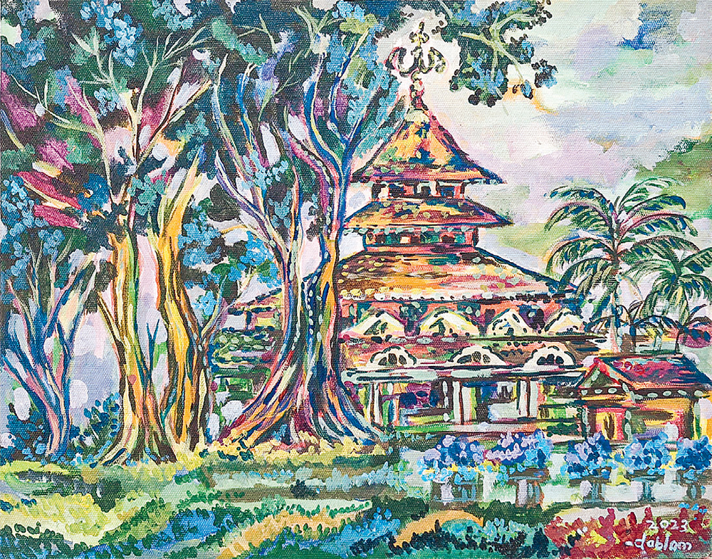 KEBINEKAAN: Buri Ubrux berjudul Klenteng Magelang. Menurut sang seniman, karya itu memiliki pesan keberagaman budaya dan tradisi tumbuh di Magelang.