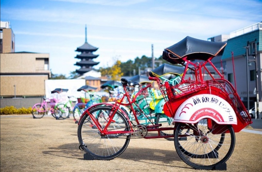 Deretan becak di kota Nara yang merupakan karya Jun Kitazawa berjudul Lost Terminal dalam You are Me. (Jun Kitazawa for Jawa Pos)