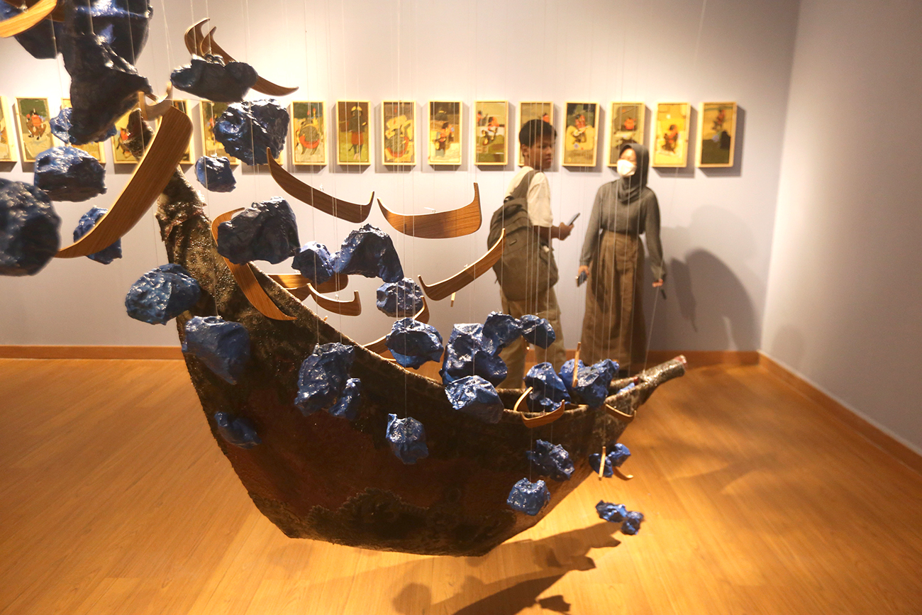 KAPAL BESAR: Karya perupa Nesar Eesar berjudul The Ambiguous Journey Series dipajang di Galeri Nasional Indonesia hingga 21 Januari mendatang.