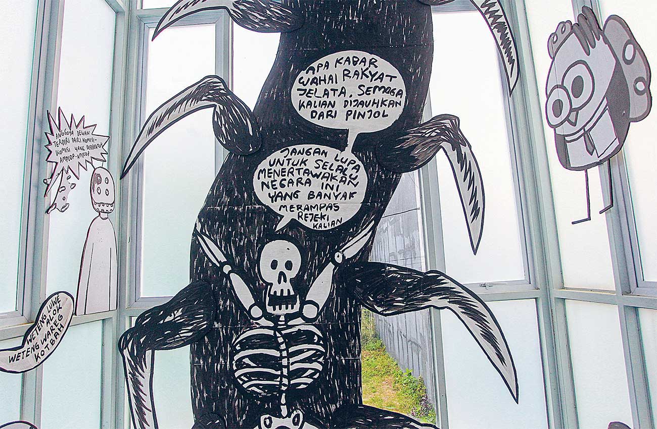 SATIRE: Teks yang muncul di Pameran The Dagingtumbuh Vol 21 Partai Komik Fotokopi menangkap suara-suara yang muncul di masyarakat.