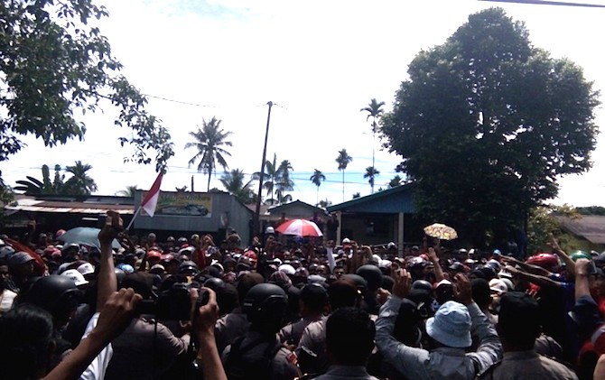 Ketika itu, mobil yang membawa Sdr dicegat massa dan simpatisan pendukung ketua PUK SPSI tersebut. Massa yang telah memadati ruas jalan raya di depan kantor PN Timika dengan spontan memblokade jalan keluar PN Kota Timika. Mereka meneriakkan yel-yel agar Sdr dibebaskan karena dinilai tidak melakukan penggelapan.