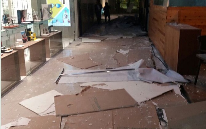 Atap salah satu pusat perbelanjaan di Ambon yang ambruk akibat gempa
