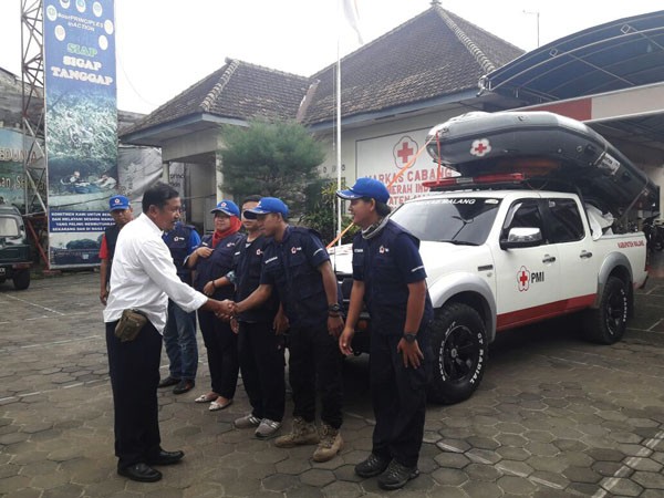 Berangkatkan Personel : Personel dari PMI Kabupaten Malang menuju Pacitan untuk membantu korban bencana, Rabu (29/11)