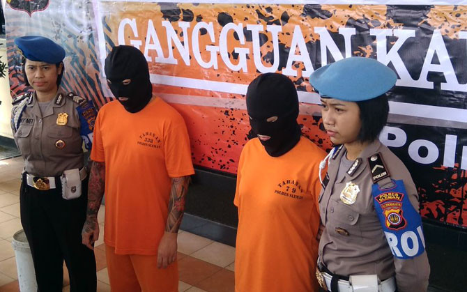 Angela Lee, perempuan selebgram bersama sang suami memakai sebo (penutup muka) di Mapolres Sleman beberapa waktu lalu.