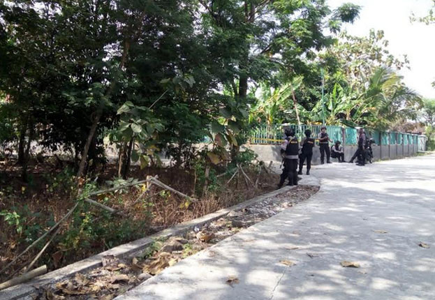PENGGELEDAHAN: Sejumlah anggota Densus berjaga di sekitar rumah BW saat dilakukan penggeledahan, Senin (4/6).