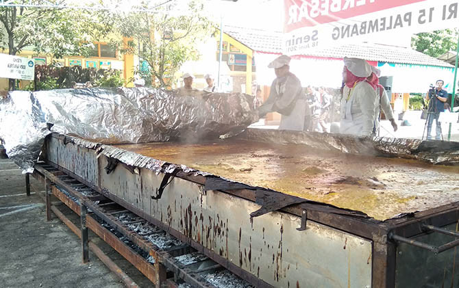 "Jadi ini semacam kontribusi kami untuk dalam mempromosikan makanan khas daerah Palembang," kata Hartawan saat ditemui usai pemberian piagam rekor MURI, Senin (18/6).