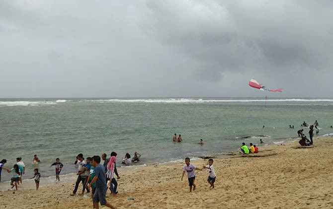 RAMAI: Wisatawan memadati Pantai Balekambang.