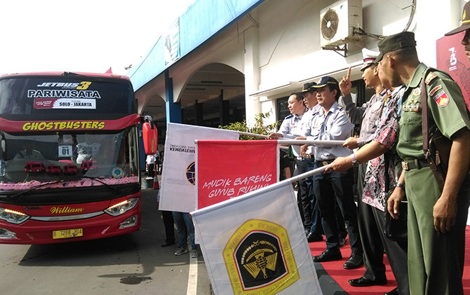JawaPos.com - Kementerian Perhubungan (Kemenhub) menggelar program balik gratis. Pemberangkatan dilakukan dari Terminal Tipe A Tirtonadi, Solo, dengan tujuan Jakarta. Total ada 69 bus pariwisata yang digunakan untuk mengangkut pemudik.