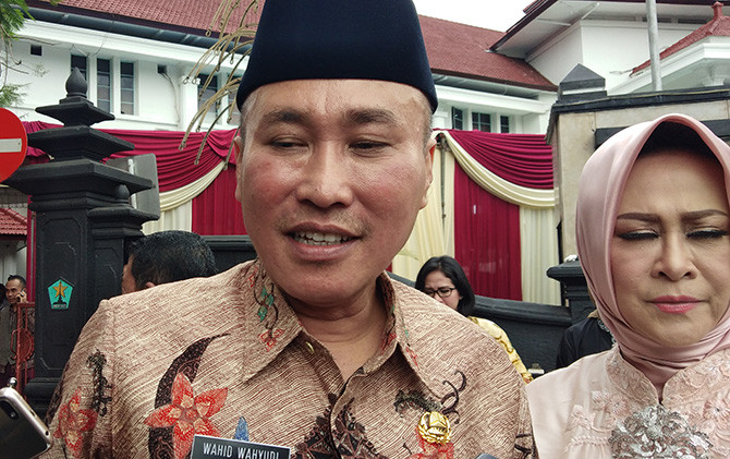 Kepala Dishub Jatim Wahid Wahyudi dalam acara halal bihalal di Balai Kota Malang, Jumat (22/6).