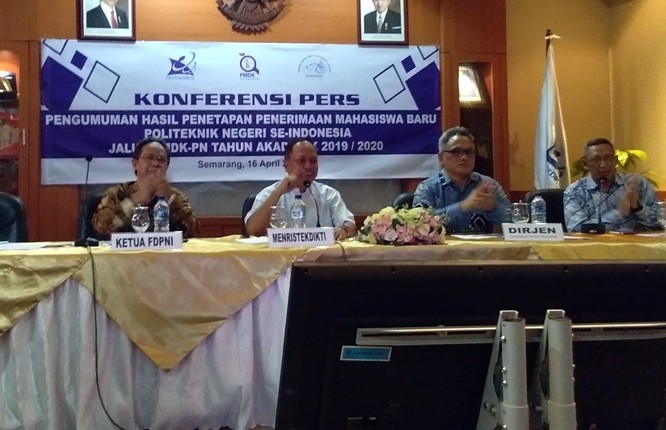 Menteri Riset, Teknologi dan Pendidikan Tinggi (Menristekdikti) Mohamad Nasir saat mengumumkan hasil PMDK-PN di Politeknik Negeri Semarang, Selasa (16/4), menyebut angka pendaftaran tahun ini adalah 206.852 siswa. Selisih 13 persen dibanding tahun lalu, yakni 183.827 pendaftar.