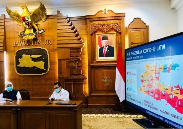 Menurut Khofifah, yang masuk zona merah atau wilayah terjangkit Covid-19 di Jatim sebanyak 18 daerah, yaitu Kota Surabaya, Kota Malang, Kabupaten Malang, Kota Batu, Kabupaten Magetan, dan Sidoarjo. Kemudian, Kabupaten Kediri, Kota Kediri, Gresik, Kabupaten Situbondo, Lumajang, Jember, Kabupaten Blitar, Kota Blitar, Kabupaten Pamekasan, Banyuwangi, Jombang, dan Tulungagung.