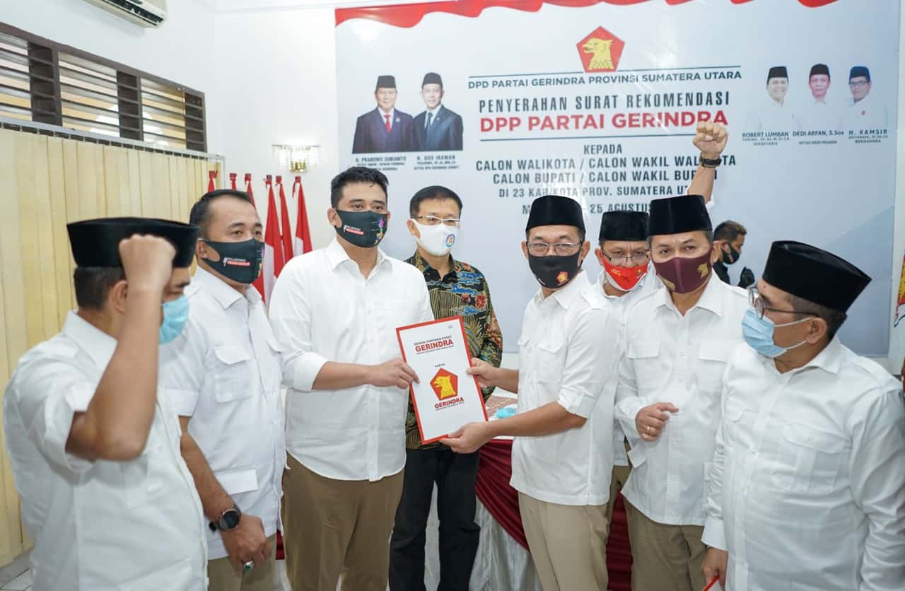 Bobby Nasution menerima surat rekomendasi dari secara resmi dari Ketua DPD Partai Gerindra Sumut Gus Irawan Pasaribu. (For JawaPos.com)