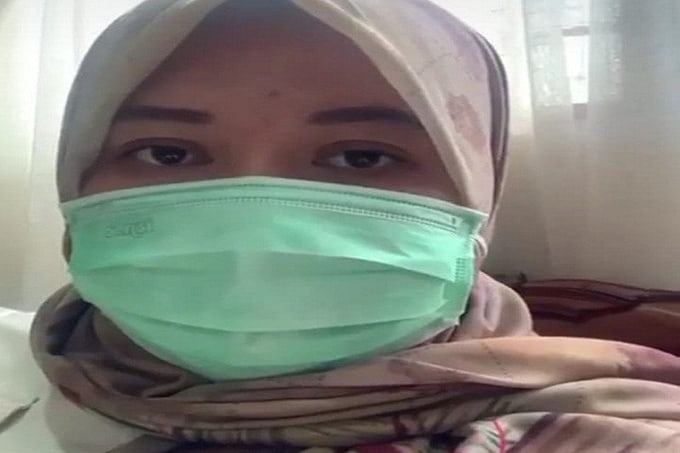 Bupati Muarojambi Hj Masnah Busyro saat mengumumkan dirinya terkonfirmasi positif Covid-19, Minggu (4/10). Screenshoot video conference/Antara