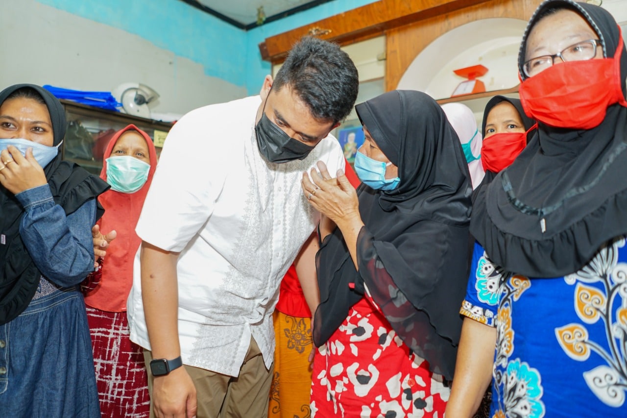 BERBISIK: Bobby Nasution mendengarkan keluhan warga yang sambil berbisik di Kota Medan, Jumat (9/10). (For JawaPos.com)