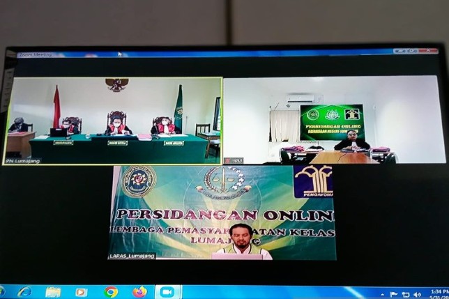 Terdakwa mengenakan baju kemeja putih dengan rompi hijau saat mengikuti persidangan secara daring dari Lembaga Pemasyarakatan (Lapas) Kelas II-B Lumajang. Ketua majelis hakim Bayu Prayitno membacakan putusan terdakwa divonis 10 bulan penjara dan denda Rp 10 juta subsider dua bulan kurungan.
