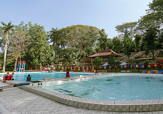 BIKIN FRESH: Pengunjung beraktivitas di kolam renang utama Pemandian Patemon, Tanggul, Jember. Air yang segar dipadu dengan udara sejuk menjadi daya tarik utama wisatawan. (Alfian Rizal/Jawa Pos)