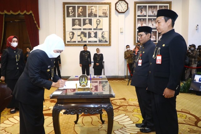 JawaPos.com–Gubernur Jawa Timur Khofifah Indar Parawansa melantik 19 pejabat pimpinan tinggi pratama (eselon II) di Gedung Negara Grahadi, Surabaya, Minggu (20/11) sore. Pengangkatan jabatan tinggi pratama di lingkungan Provinsi Jatim tersebut tertuang dalam Surat Keputusan Gubernur Jawa Timur Nomor 821.2/8586/204/2022 tanggal 18 November 2022.