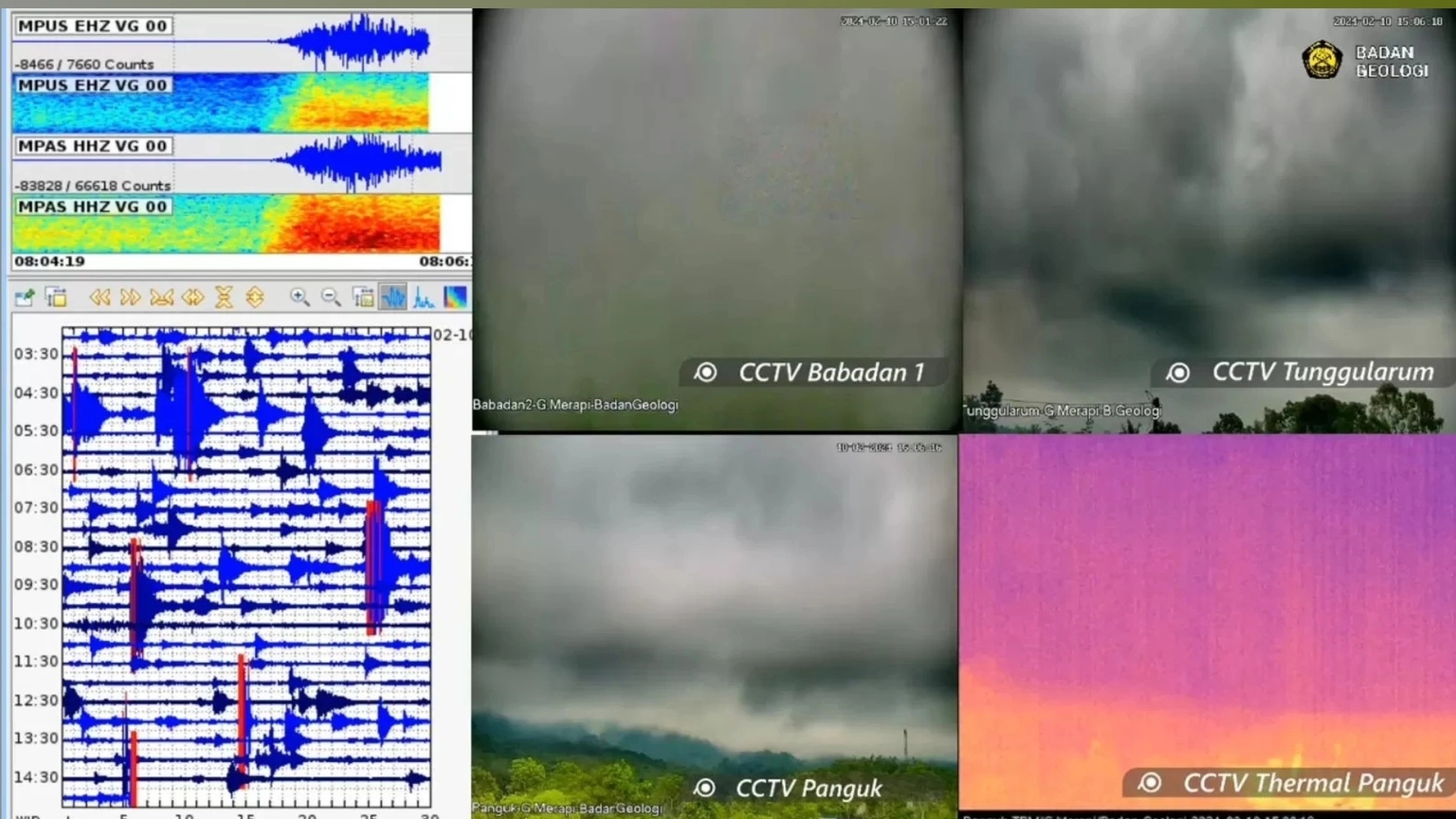 Gunung Merapi di Sleman melepaskan dua kali Awan Panas Guguran (APG) pada Sabtu, 10 Februari 2024. (BPPTKG)