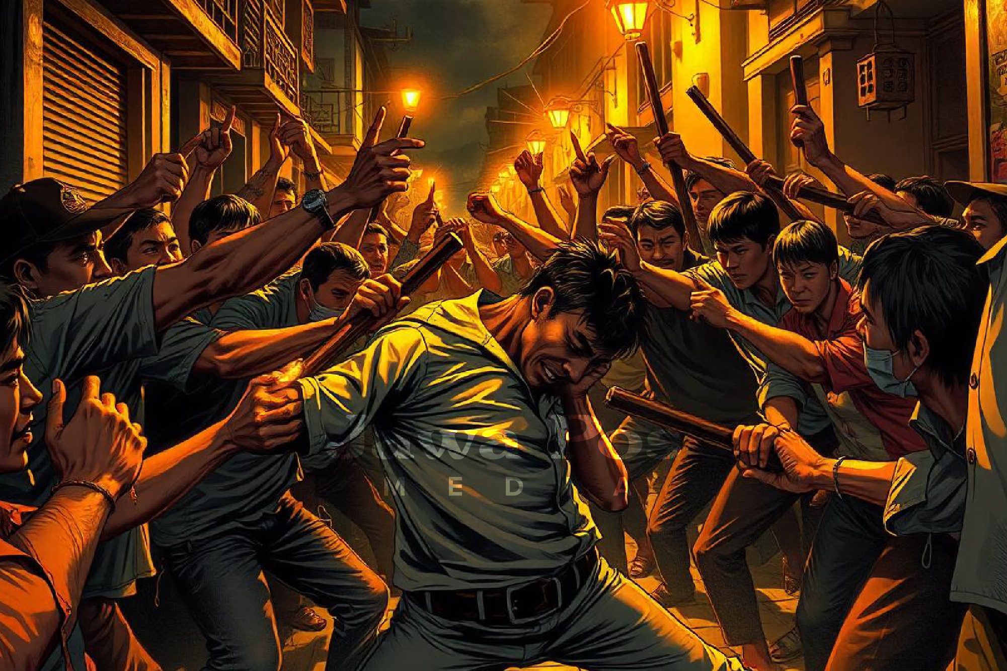 Ilustrasi pengeroyokan dan penganiayaan. (Dimas Pradipta/JawaPos.com)