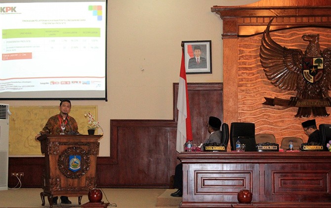 Ketua Satgas Unit Korsup Pencegahan KPK,, Asep Rahmat Suandh meminta DPRD NTB untuk tidak lagi melakukan rapat-rapat di luar