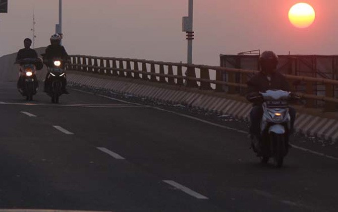 Pengendara melintas di Fly Over Jl Pegambiran, Jumat (11/8). Pembangunan CORR yang terus terunda salahsatunya akan menghubungkan wilayah selatan dengan Fly Over ke arah Jl Yos Sudarso.