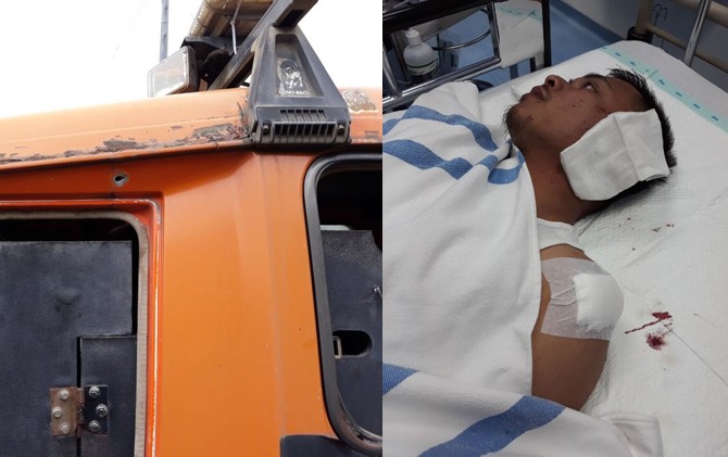 “Mobil ditembak dari sebelah kiri, yang mengakibatkan driver kendaraan pengawalan mengalami luka terkena serpihan di bahu kiri dan pipi kiri,” kata Kamal.