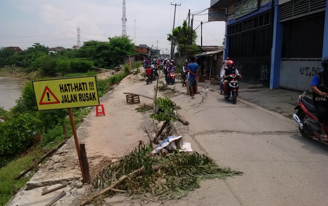 Padahal, kata Hery juga, pemerintah daerah sudah berpengalaman memperbaiki jalan yang amblas. Namun, kekuatan jalan tetap tidak mampu menahan terjangan air. Sehingga, setiap banjir tiba, jalan itu kembali amblas. ”Sudah tiga sampai empat kali jalan ini diperbaiki Pemkab Bekasi, tapi rusak lagi, ambles lagi jalannya,” ungkapnya juga.
