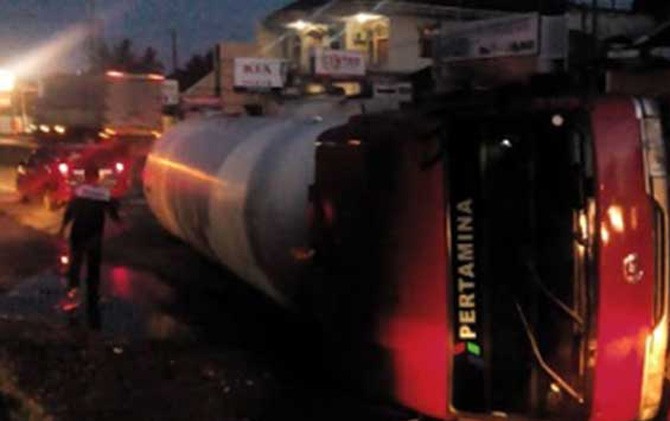 JawaPos.com - Kecelakaan tunggal terjadi di perbatasan Subang-Indramayu. Truk tangki LPG Pertamina terbalik saat melintas di Jalan Raya Pantura Kecamatan Sukra. Beruntung, kecelakaan tersebut tidak menelan korban jiwa.