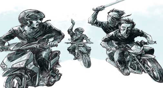 Aksi berandalan bermotor tak hanya melakukan perusakan, mereka pun tak segan dengan sadis melukai pengendara lain. Beberapa kejadian seperti pelemparan pos polisi di persimpangan jalan Ibrahiem Adjie-Ahmad Yani, kejadian pengeroyokan di jalan Pungkur dan Jalan Antapani, merupakan ulah brandalan kelompok bermotor. (sar/hsn/JPG)