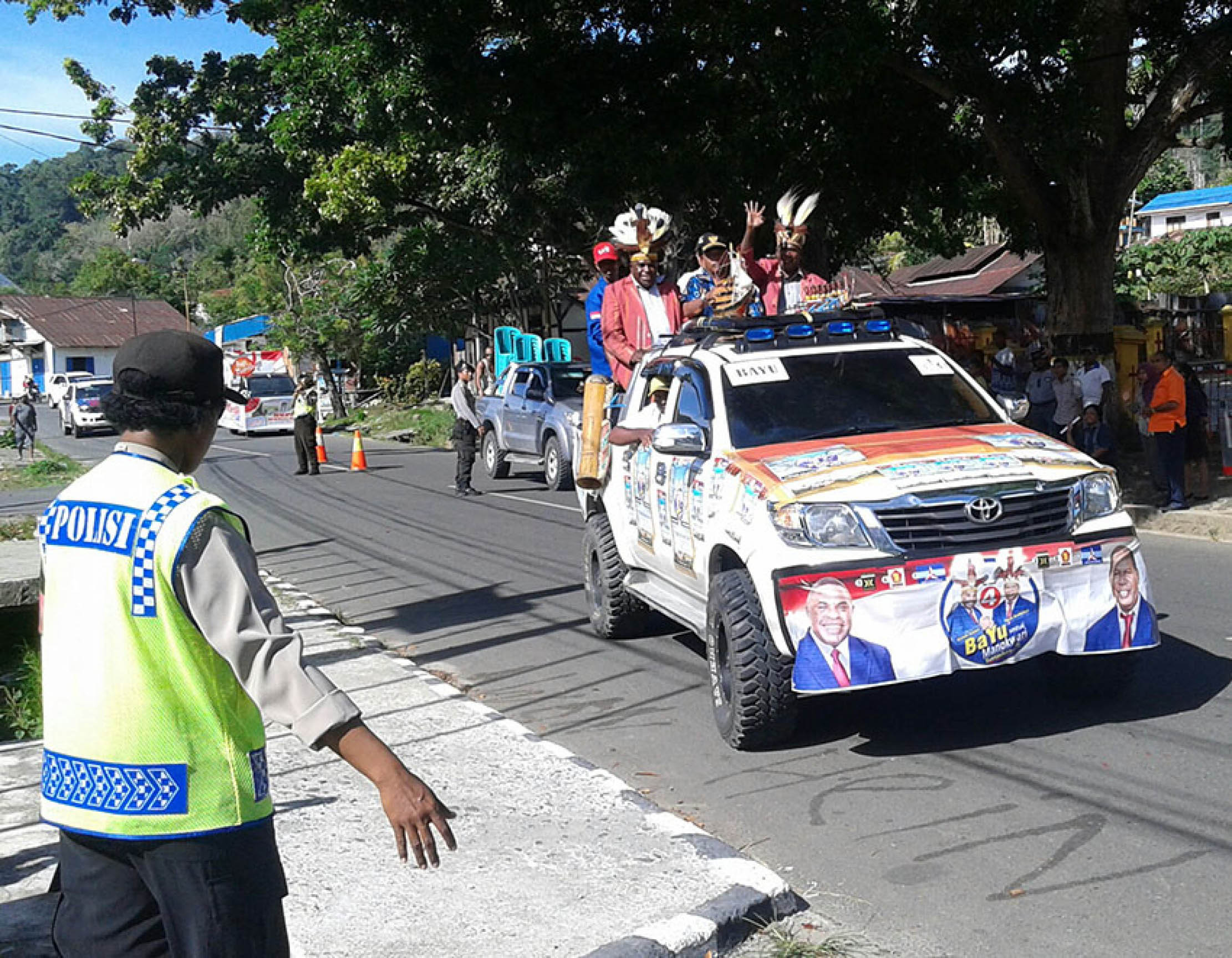 Iring-iringan kendaraan peserta karnaval cukup panjang. Keempat pasangan membawa masa masing-masing serta atribut. Ketua dan komisioner KPU Manokwari ikut serta pada karnaval ini.
