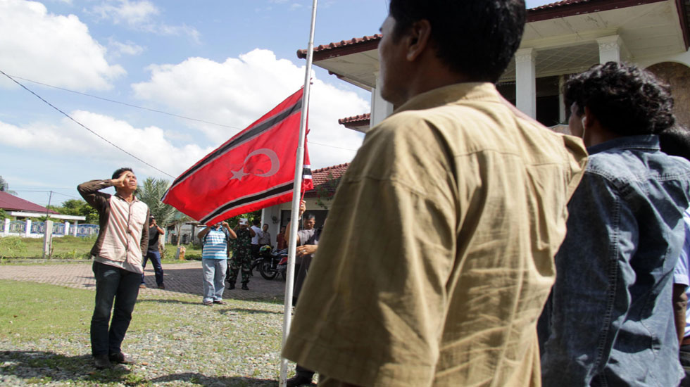 "Kita menaikan bendera bulan bintang, untuk mengenang jasa saudara kami yang meninggal. Tidak ada maksud membuat kekacauan ataupun lainnya, hanya mengenang jasa dan mendoakan mereka," kata Rizal, salah seorang peserta upacara.