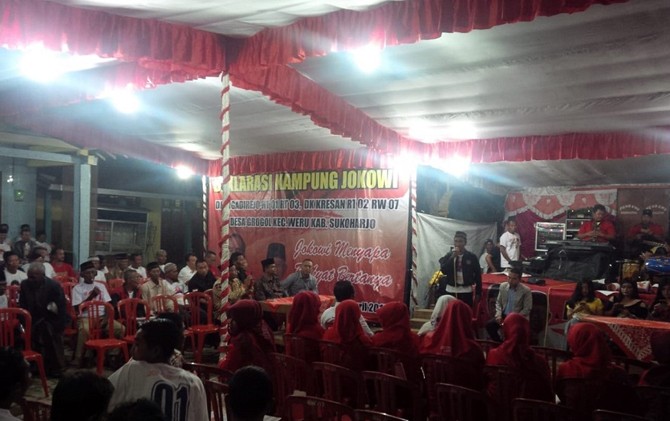 JawaPos.com - Pembangunan infrastruktur yang merata membuat warga Dukuh Ngadirejo dan Kresan, Desa Grogol, Weru, Sukoharjo makin kepincut dengan kepemimpinan Presiden Joko Widodo. Warga di dua dukuh tersebut mendukung kembali Jokowi bersama Ma'ruf Amin dengan menargetkan perolehan suara sebesar 70 persen. Target tersebut diyakini tercapai dengan adanya berbagai upaya, salah satunya yakni pendirian Kampung Jokowi.