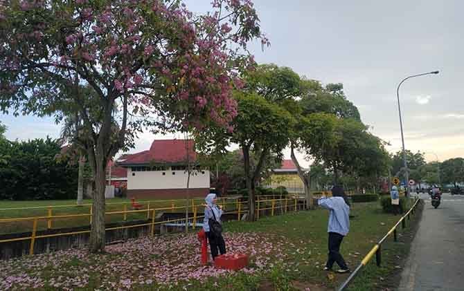 JawaPos.com - Kawasan Industri Batamindo (KIB) di Kecamatan Sungai Beduk, Batam, Kepulauan Riau (Kepri), mendadak ramai dalam seminggu terakhir. Banyak masyarakat yang ingin menyaksikan bunga Tabebuya yang kini sedang mekar. Tak sedikit dari mereka yang berfoto untuk mengabadikan momen tersebut.