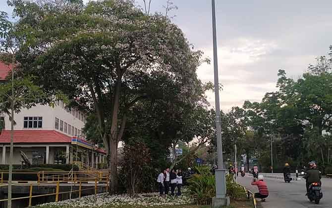 Meski demikian, kondisi tersebut bisa dimaklumi karena memang bunga Tabebuya tidak selalu mekar dalam jumlah banyak seperti sekarang setiap tahunnya.