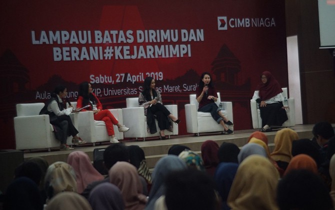 JawaPos.com - CIMB Niaga mengajak seluruh generasi penerus bangsa untuk mengejar mimpi dan cita-cita mereka. Untuk mendorong semangat tersebut, CIMB Niaga mengadakan talk show inspiratif bertajuk '#KejarMimpi Leaders Camp'. Kegiatan yang dihadiri oleh sejumlah pembicara ini diadakan di gedung FKIP UNS Solo, Sabtu (27/4).