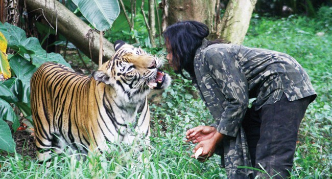 JawaPos.com- Kisah pertemanan antara manusia dan harimau seperti dalam buku dan film Life of Pi bisa dijumpai di Desa Dilem, Kecamatan Kepanjen, Kabupaten Malang. Selama sepuluh tahun, Abdullah Sholeh, santri di Pondok Pesantren Al Kaffah, telah bersahabat karib dengan Mulan Jamilah, seekor harimau Benggala (panthera tigris bengalensis).