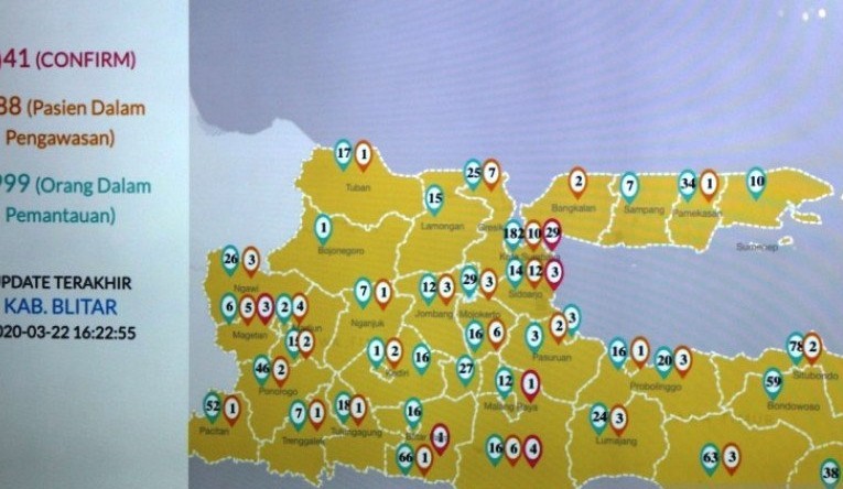 Gubernur menjelaskan, data itu dihimpun hingga pukul 18.00 WIB, Minggu (22/3). Kota Surabaya sebanyak 29 orang, lima orang dari Malang Raya, tiga orang dari Kabupaten Magetan, tiga orang dari Kabupaten Sidoarjo, serta seorang lagi Kabupaten Blitar.