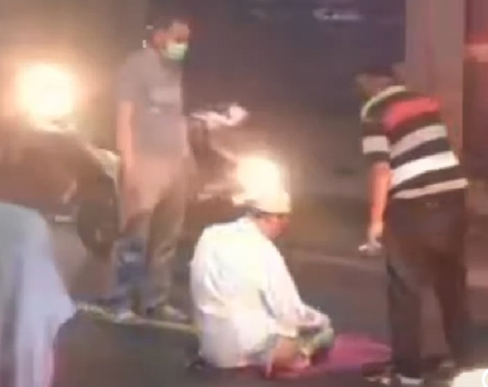Pemandangan ganjil tersebut sontak membuat beberapa warga mendekati pria yang tengah beribadah itu. Mereka membujuk pria itu agar salat di pinggir jalan.