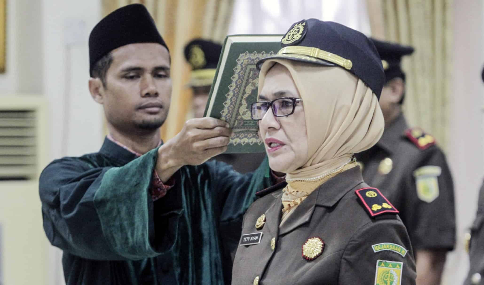 Kajari Pelalawan Tetty Syam diambil sumpah saat pelantikannya di aula Kejati Riau.