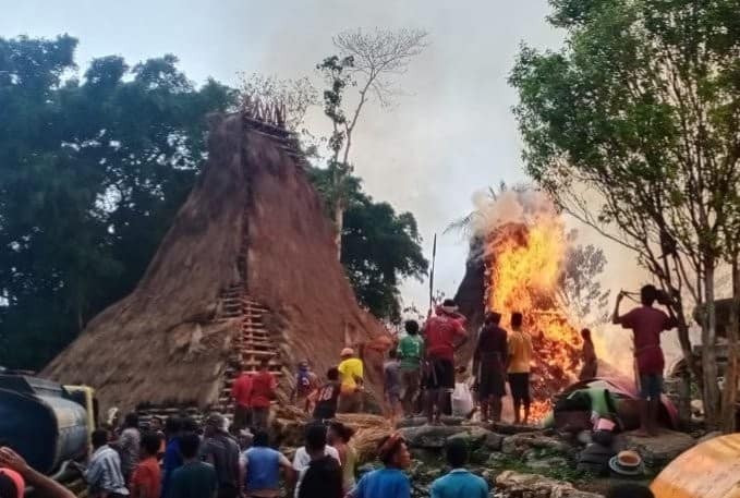 Kebakaran rumah adat di Sumba Barat Daya. Polres Sumba Barat/Antara