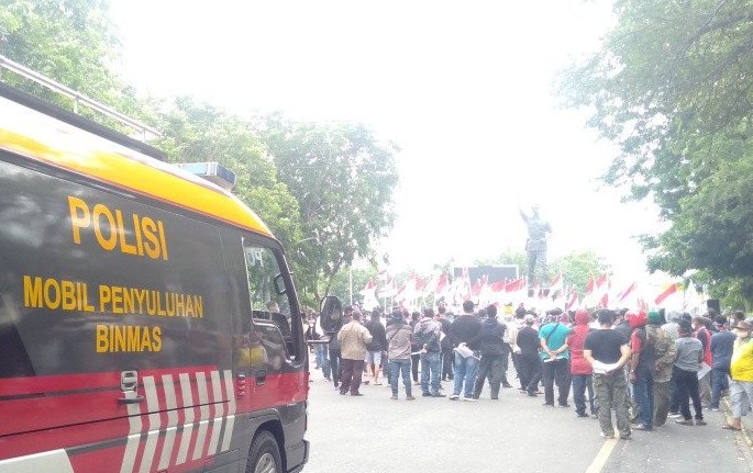 Aksi yang diikuti ratusan orang tersebut dimulai sekitar pukul 14.00 WIB. Sedangkan puluhan petugas kepolisian datang sekitar 20 menit kemudian. Petugas langsung meminta masyarakat yang mengikuti aksi damai tersebut untuk membubarkan diri.