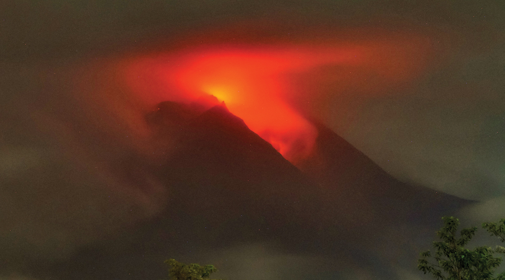 STATUS SIAGA: Lava mengalir dari kawah Merapi kemarin. (AFP)