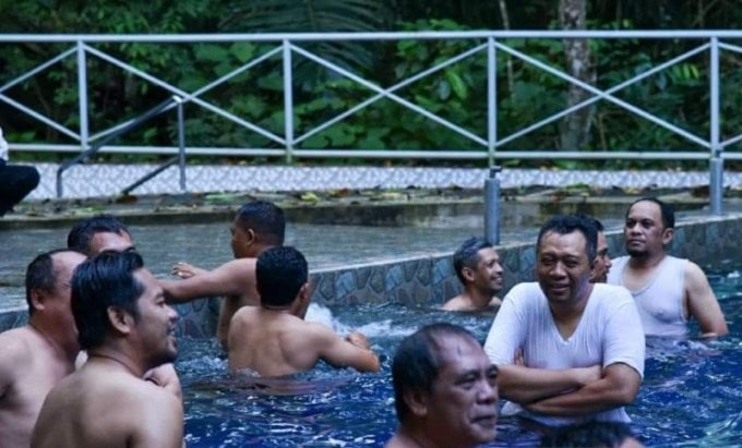 Gubernur NTB berenang bersama di kolam di Kabupaten Lombok Utara. Facebook Gubernur NTB Zulkieflimansyah/Antara