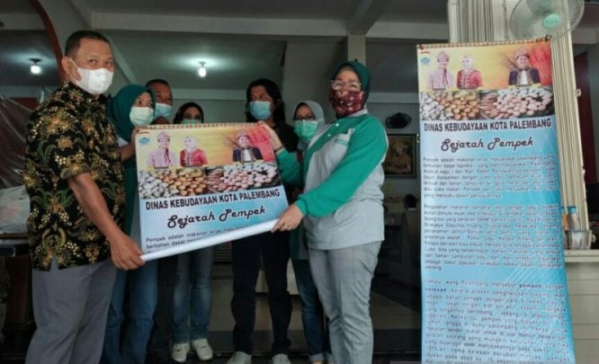 Dinas Kebudayaan Palembang memasang spanduk berisi koreksi sejarah pempek. Antara