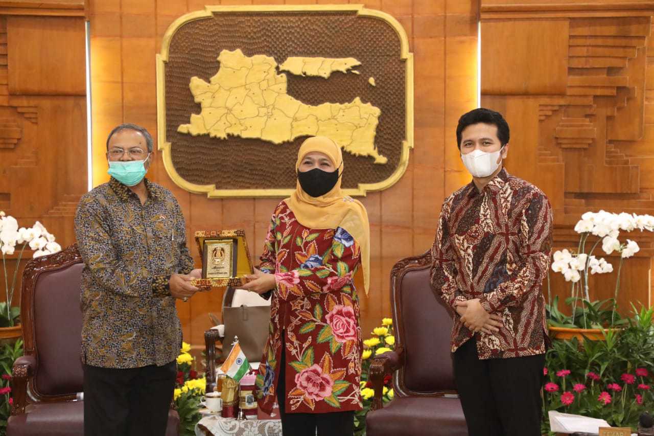 JawaPos.com - Duta Besar India untuk Indonesia Shri Manoj Kumar Bhart menemui Gubernur Jawa Timur Khofifah Indar Parawansa pada Rabu (20/5). Mereka membicarakan peluang kerja sama antara dua pihak. Ada beberapa yang akan ditindaklanjuti. Salah satunya beasiswa pendidikan bagi ASN di Jawa Timur. Khofifah didampingi oleh Wakil Gubernur Jawa Timur Emil Elestianto Dardak, Asisten Perekonomian dan Pembangunan Setdaprov Jawa Timur Jumadi.