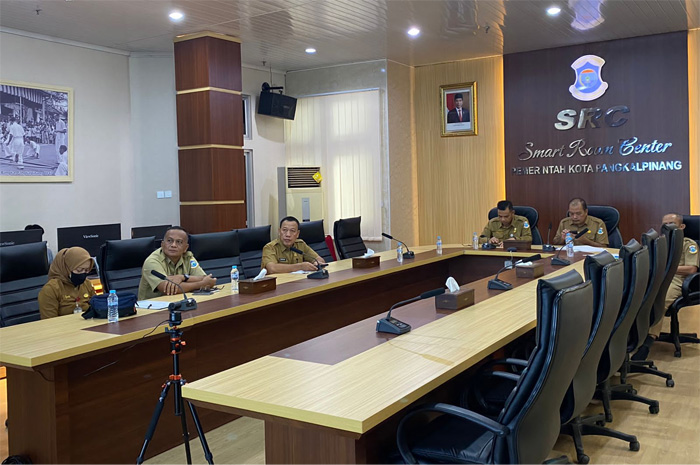 Sekda Kota Pangkalpinang, Mie Go mengikuti rapat virtual pengendalian inflasi daerah bersama Kementerian Dalam Negeri, Senin (11/12/2023).