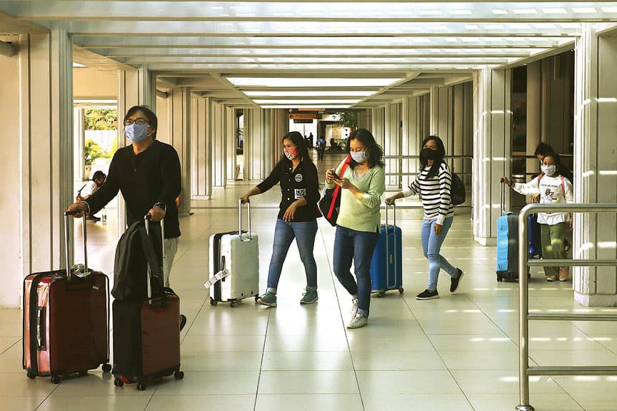 BANGKIT LAGI: Wisatawan keluar dari Bandara I Gusti Ngurah Rai, Bali, (17/8). Kendati aktivitas wisata mulai aktif, kasus Covid-19 di Bali bisa ditekan. (SALMAN TOYIBI/JAWA POS)