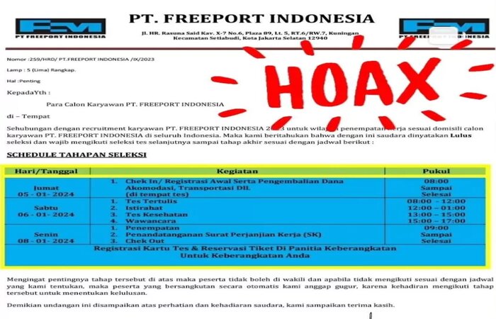 Saat ditanyakan kepada Staf Korporat Komunikasi, PT Freeport Indonesia yang bertugas di Gresik, Agita Offi menyatakan jika dokumen elektronik tersebut memang palsu alias Hoax.